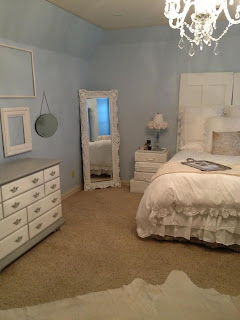 I just finished a dresser yesterday, and it was delivered to her new home today! I don't always get to see the new space, but I am so glad I got to see this one! Now let me tell ya... This dresser is a classic piece, that was a BIG BROWN BEAST!! I had a customer come in the shop and we talked about painting it, GRAY & WHITE. So here ya go. I LOVE how just painting something can give it a whole new life. BEFORE, it was such a big masculine piece, AFTER, it was a light girly piece. What a huge difference!!!